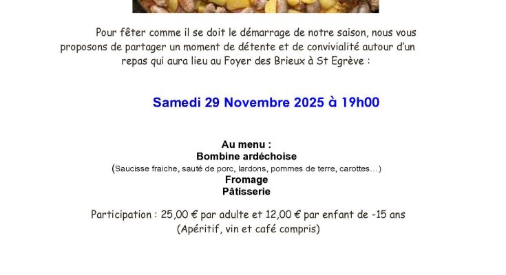 Comme je l’avais annoncé, nous nous retrouverons donc samedi 29 Novembre à 19h dans la salle du foyer des Brieux à St Egrève.