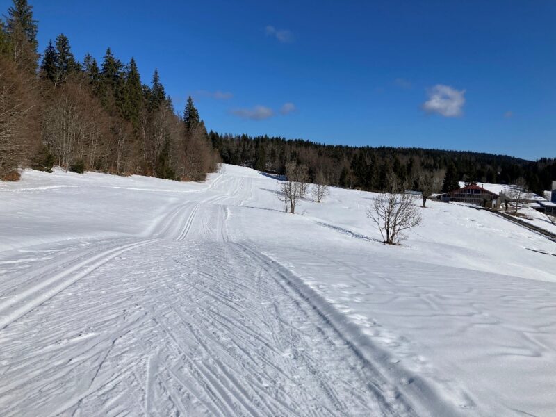 Les chutes de neige de février ont bien recouvert le massif Jurassien, et malgré les températures positives des derniers jours, la course a pu se faire sur le tracé originel et avec une neige de qualité: le fond est resté dur sur une bonne partie de la piste, même si vers 11 h certaines secteurs exposés transformaient vite.